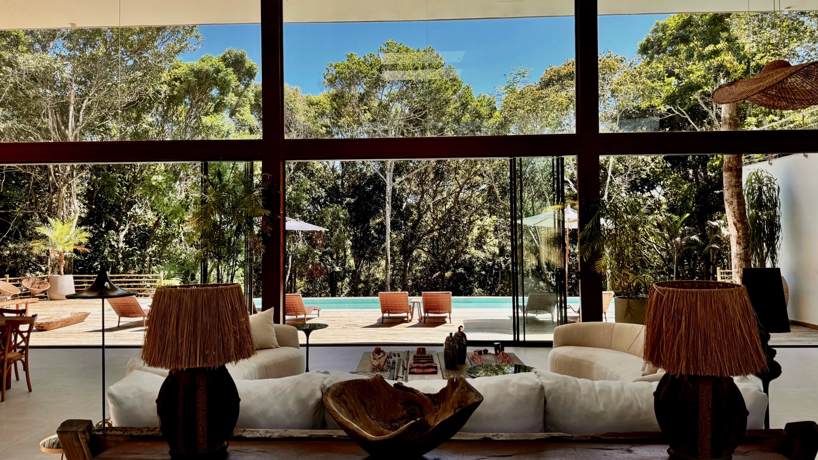 Designed combining influences, Bahia, Bali, rustic hand made woods crafted by local artisans, decorated by pieces of light contemporary design. Spaces to feel at home, and away from everything, immersed in tropical beauty and close to the center of everything that Trancoso can offer.