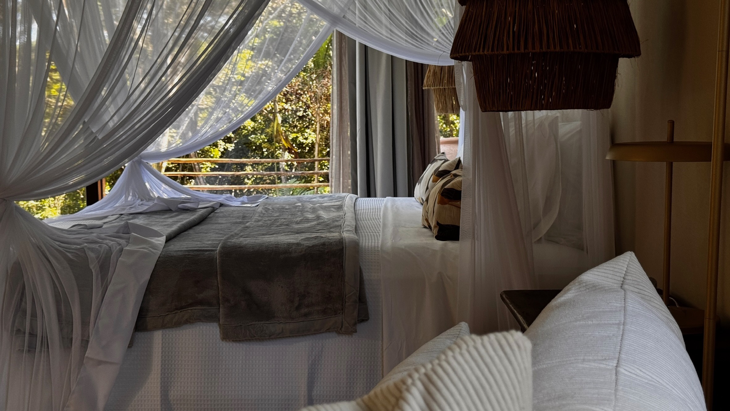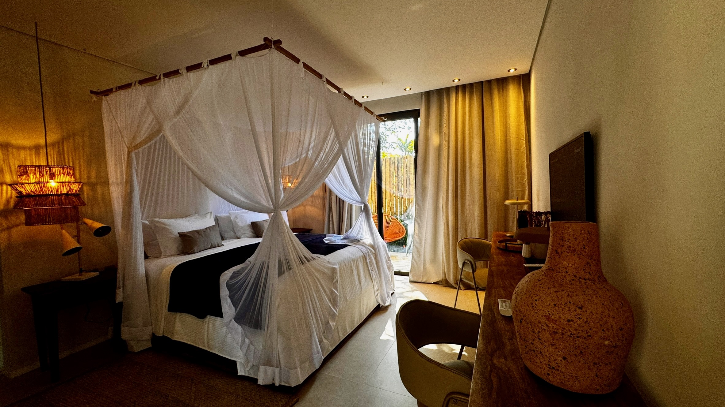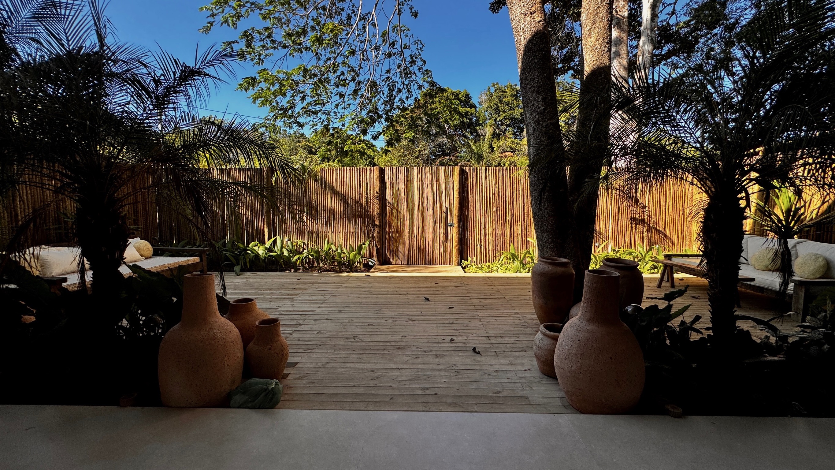 Designed combining influences, Bahia, Bali, rustic hand made woods crafted by local artisans, decorated by pieces of light contemporary design. Spaces to feel at home, and away from everything, immersed in tropical beauty and close to the center of everything that Trancoso can offer.