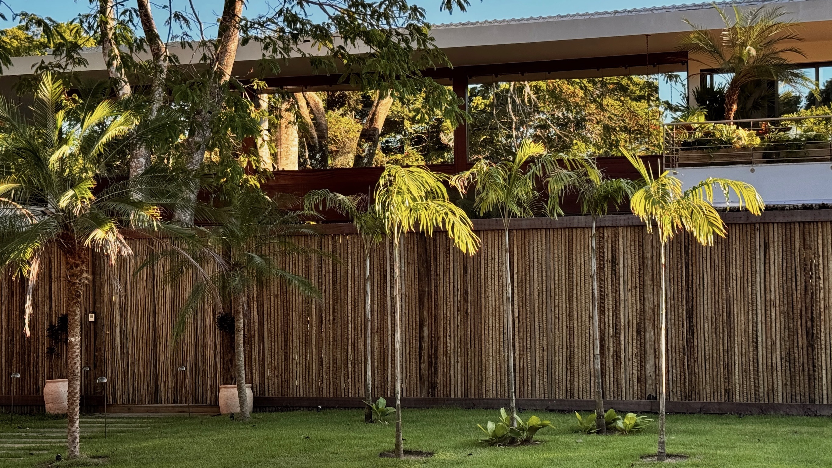 A Villa Áurea é uma residência de 700 m² escultoria e biofílica imersa na mata preservada, apenas 300 metros da praia.