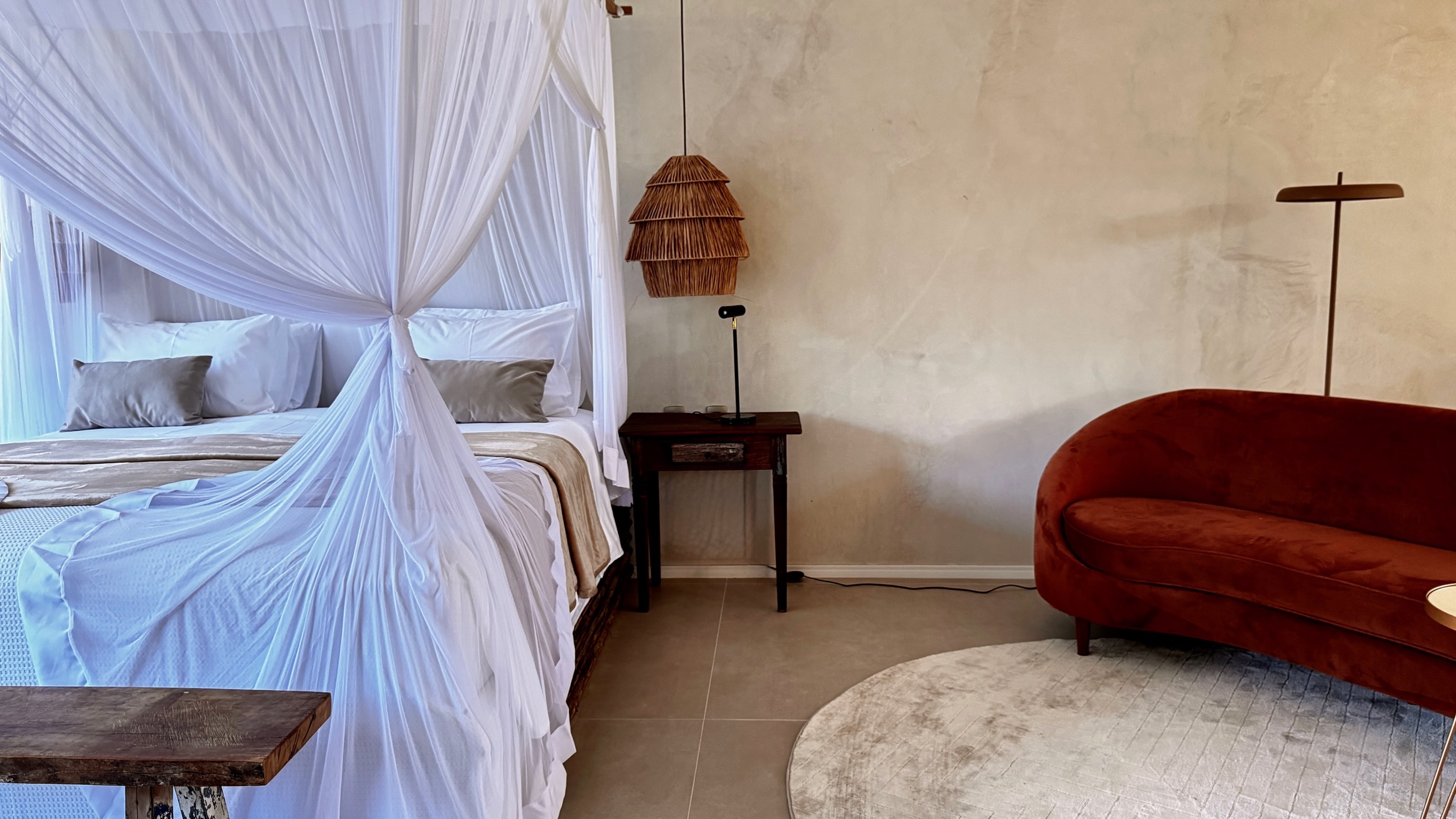 The master suite is suspended amidst the foliage of a mango tree in a tree-house effect. Sleeps 2 + 2. Sky Tv, Wifi. Air con.